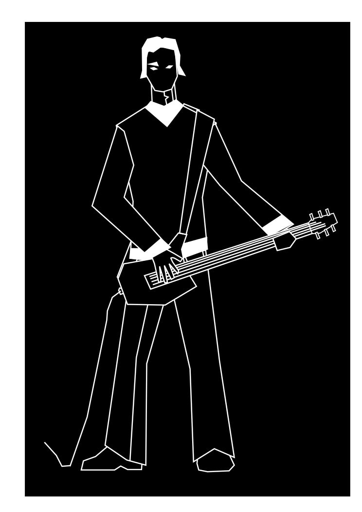 Tags: black and white, cartoon, character, guitar, guitarist, low poly, music