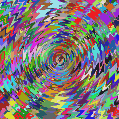 This is a colorful, abstract art piece that appears to be created using various computer programs. It features a circular pattern with a central point of focus, which seems to be the center of attention in this visually striking composition. The colors and patterns are vibrant and diverse, making it an interesting visual experience for anyone who looks at it. The image is likely a result of distorting random patterns using software like Paint.net and then vectorizing them with Inkscape, resulting in the unique and intricate design seen here.