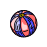 This features a round, blue and red ball with a black outline. It is composed of red and blue stripes, giving it an interesting appearance. The ball appears to be the main focus of the image, occupying most of the frame. Its unique design makes it stand out as a distinctive object in the scene.