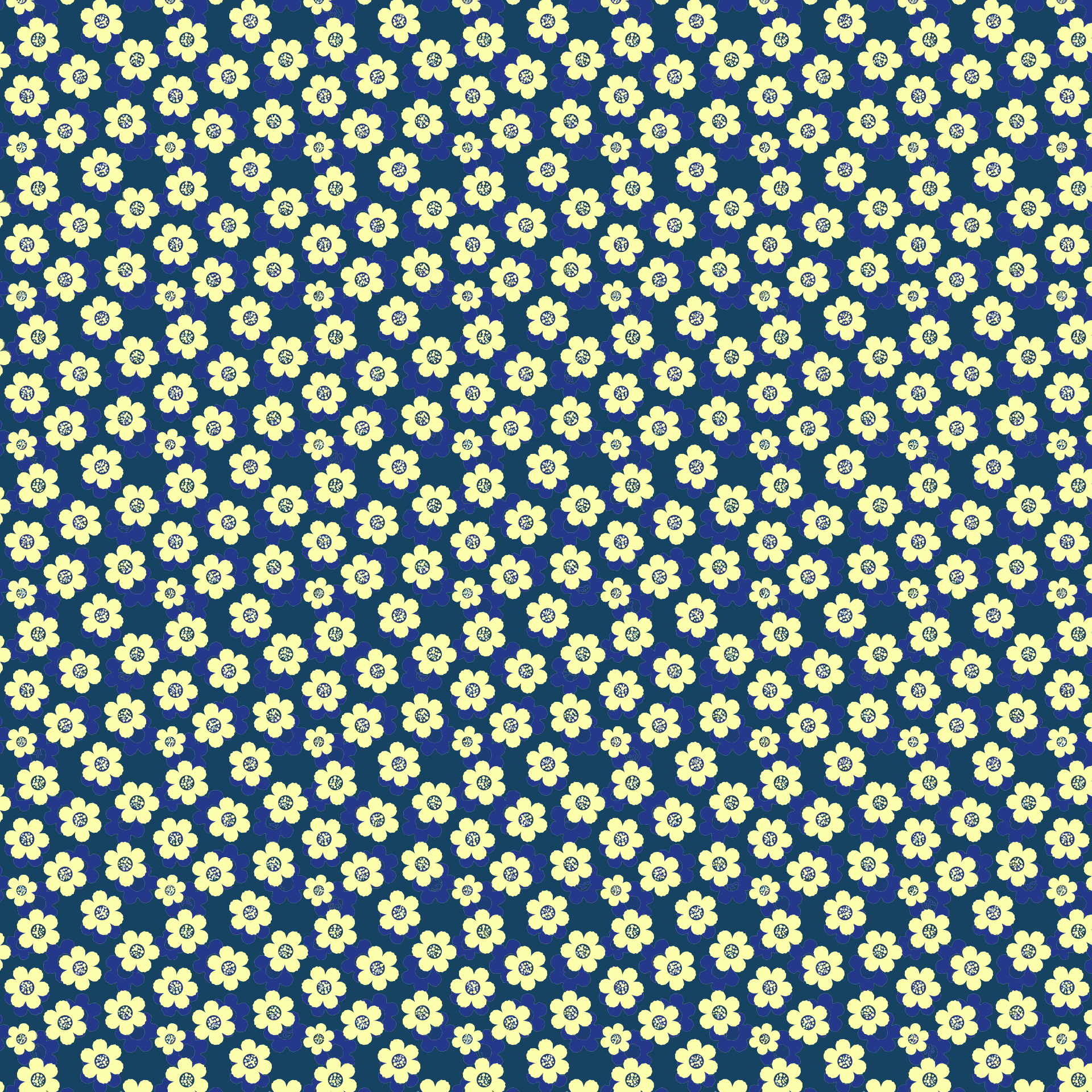 This features a blue and yellow floral pattern with small flowers scattered throughout the background. These flowers are of various sizes, creating an intricate and visually appealing design. The blue and yellow color scheme adds a sense of depth to the overall composition, making it an attractive and eye-catching pattern. This design could be used for a variety of purposes such as wallpaper, fabric, or even as part of a larger art piece.