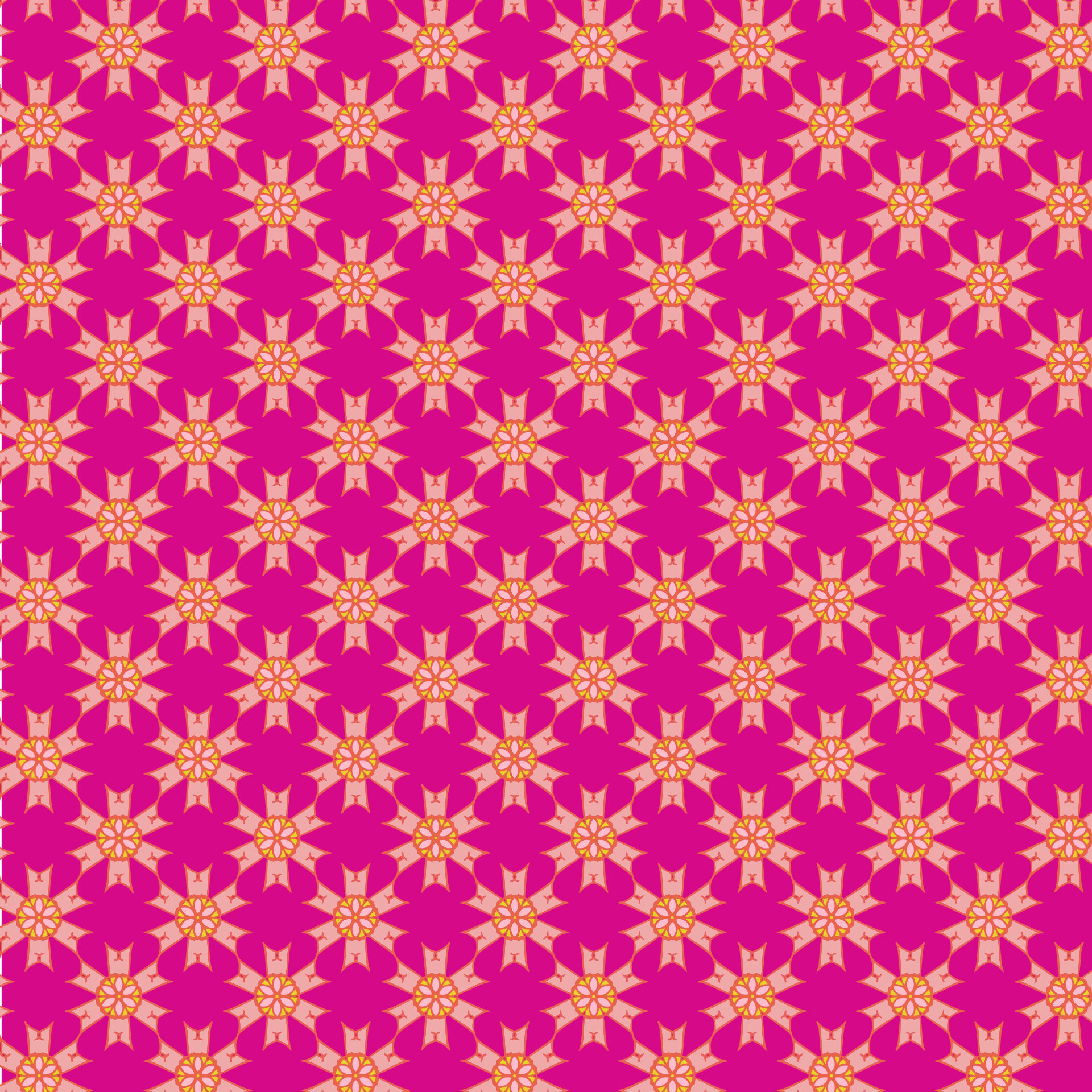 This features a pink and orange floral pattern with a variety of flower shapes. There are at least 13 different types of flowers visible in the design, each varying in size and shape. Some of these flowers have a more rounded appearance while others are elongated or angular. The overall effect is a visually appealing and intricate pattern that showcases the beauty of nature's flora.