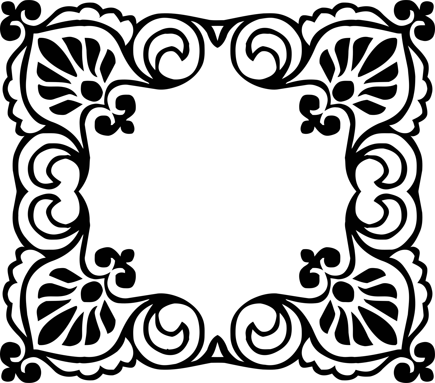 This features a decorative design with an ornate border, likely used for framing or embellishing artwork. The frame is adorned with intricate patterns and swirls, creating a visually appealing effect. The design appears to be black and white, giving it a classic and elegant appearance. This type of frame can enhance the presentation of any artwork placed within it, making it an attractive choice for displaying paintings or photographs in a sophisticated setting.