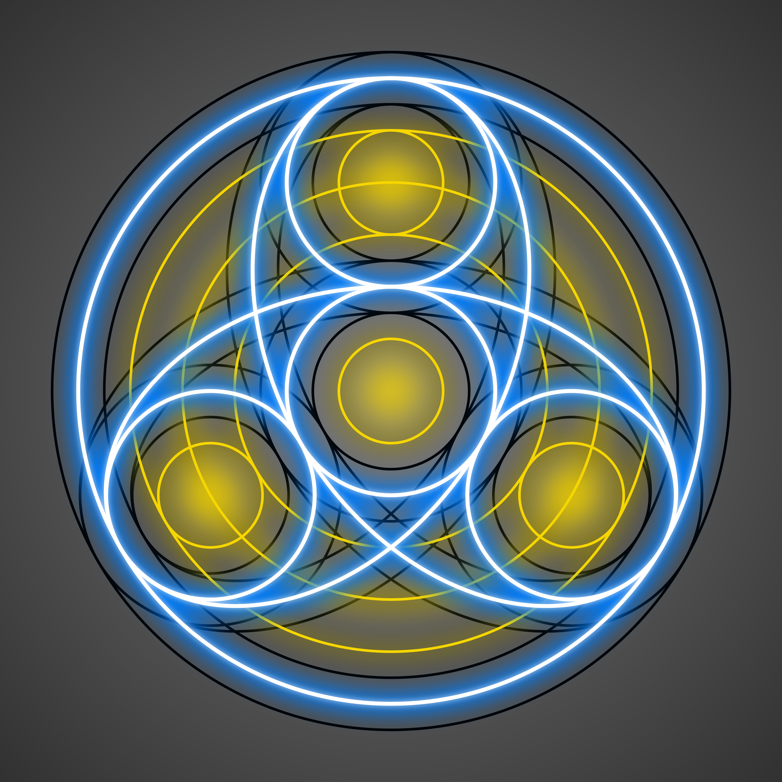 This features a blue and yellow circle with multiple circles inside it. These circles are arranged in various positions, creating an intricate pattern that fills the entire frame of the image. The colors used for this design are predominantly blue and yellow, giving the overall appearance a vibrant and lively feel. The arrangement of these circles creates a sense of depth and complexity, making it an interesting visual piece.