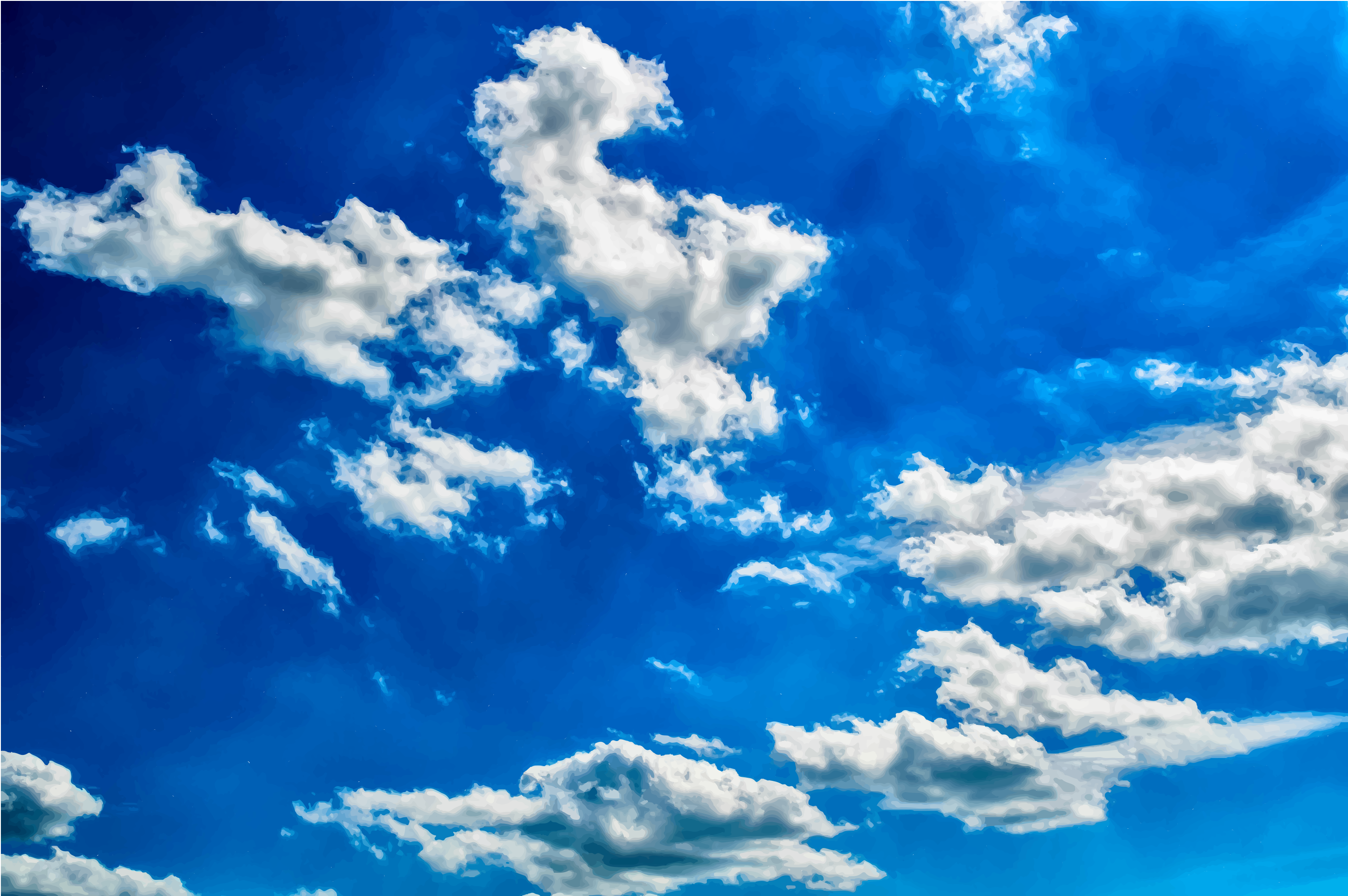 This features a beautiful blue sky filled with numerous white clouds. These clouds are scattered throughout the scene, creating a picturesque and serene atmosphere. The cloudy sky is reminiscent of a sunny day, as it appears to be a clear and bright day despite the presence of clouds. This type of weather can often evoke feelings of relaxation and tranquility, making it an ideal setting for various outdoor activities or simply enjoying nature's beauty.