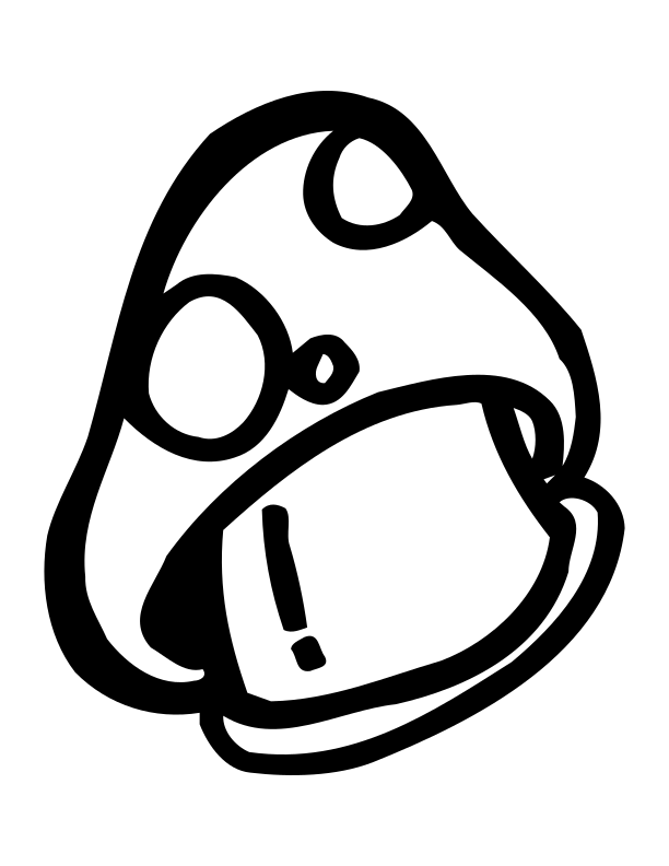 This features a black and white drawing of a mushroom with an exclamation point symbol on it. The mushroom is depicted in various positions, including one where its mouth appears to be open. This creative representation of the mushroom adds a playful touch to the artwork. The overall composition of the image showcases the artist's skill and attention to detail in capturing the essence of the subject matter.