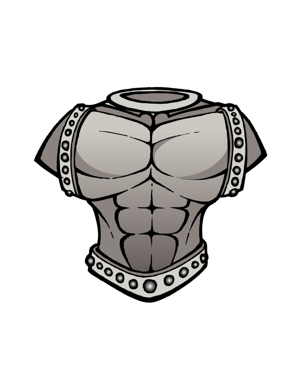 This features a cartoonish, muscular torso with a chest protector. This character is wearing a chainmail vest and has a large chest, giving it an imposing appearance. The design of the armor suggests that it could be part of a medieval or fantasy setting. The overall style of the image gives off a sense of strength and power, making it an interesting visual piece.