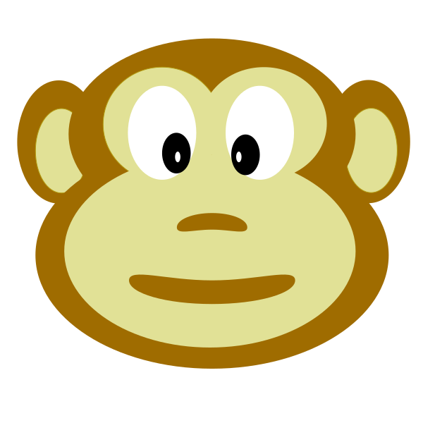 This features a brown monkey with two eyes and two ears, giving it a cute and friendly appearance. It is an iconic symbol often used to represent playfulness or childlike innocence. The monkey's facial expression appears to be smiling, adding to its cheerful demeanor. This image could be used in various contexts such as children's books, games, or even as a decorative element on clothing or accessories.