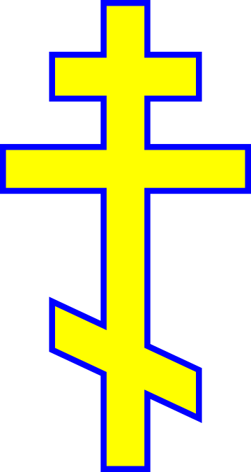 This features a large, blue and yellow cross with a gold outline. This cross is prominently displayed on the left side of the image, taking up a significant portion of the frame. The colors used in this design are vibrant and eye-catching, making it an interesting focal point for viewers. The combination of blue and yellow creates a striking contrast against the background, drawing attention to the cross itself. Overall, the image showcases a bold and visually appealing representation of the Orthodox Cross.
