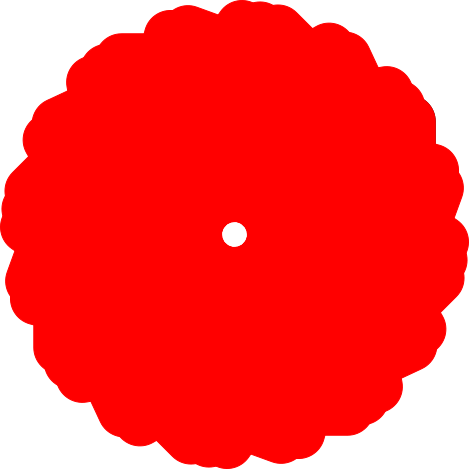 This features a large, red circle with a white dot in the center. This circle is made up of multiple smaller circles arranged around it, creating an intricate pattern. The overall appearance gives off a sense of depth and complexity, as if the entire composition were made from a series of interconnected circles. The red color of the main circle contrasts beautifully with the white dot in the center, drawing attention to this focal point within the design.