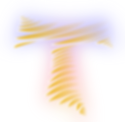 This features a yellow and orange symbol, which appears to be an abstract representation of the letter T. The colors are vibrant and create a visually striking effect. The symbol is positioned in the center of the frame, drawing attention to its unique design. The overall composition of the image gives it a somewhat blurry appearance, adding depth and intrigue to the scene.