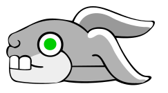 This features a cartoon bunny with big teeth and green eyes. It is sitting in the middle of the frame, occupying most of the space. The bunny's teeth are prominently displayed, making it look like it is about to eat something or has just finished eating. The overall appearance of the image gives off a playful and fun vibe, likely intended for entertainment purposes.