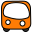 This features a cartoon bus with an orange color scheme. It is depicted in a square format, making it suitable for various applications such as buttons or icons. The bus has two wheels visible on the bottom right side of the image, adding to its realistic appearance. Overall, this cartoon bus icon can be used in a variety of contexts where transportation or public transit is relevant.