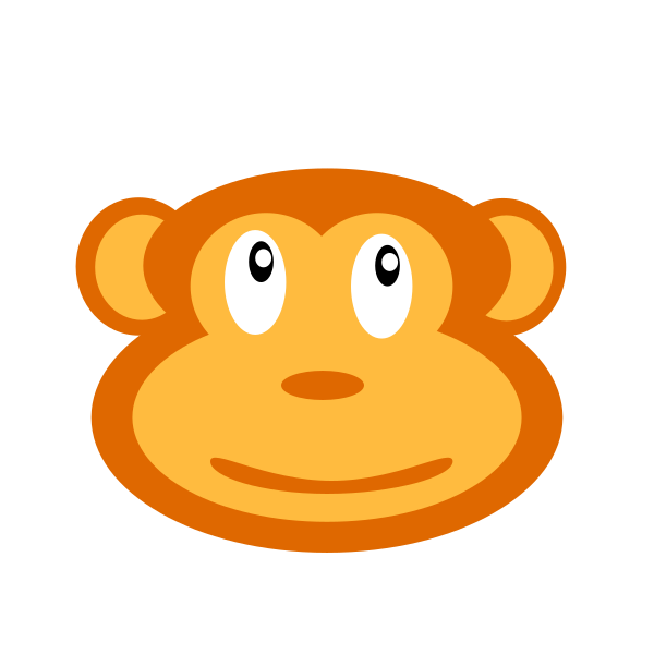 This features a cartoon monkey with an orange face and yellow eyes. It has a big smile on its face, giving the impression of being happy or playful. The monkey's ears are also depicted in yellow color, adding to the overall cheerful appearance of the character. This cute little monkey is likely used as an icon or symbol for various purposes such as social media, games, or other forms of digital communication.
