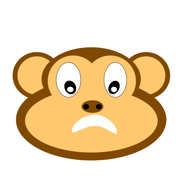 This features a brown and white cartoon monkey with a sad expression on its face. It has large, round eyes that give it an innocent appearance. The monkey's mouth is slightly open, showing its teeth in a frowning manner. This cute little creature appears to be the main focus of the image, which is likely meant for entertainment or as part of a design project.