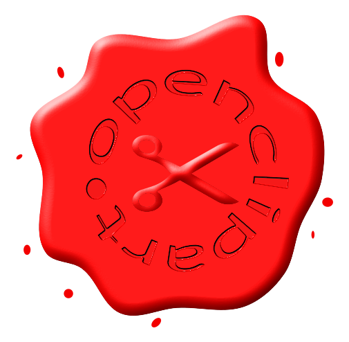 This features a red wax seal with the word "Openclipart" written on it. The seal is designed to resemble scissors, giving it an interesting and unique appearance. The scissor design adds a creative touch to the logo, making it stand out from typical logos. This particular image may vary in appearance depending on the browser used to view it, but its overall concept remains consistent.