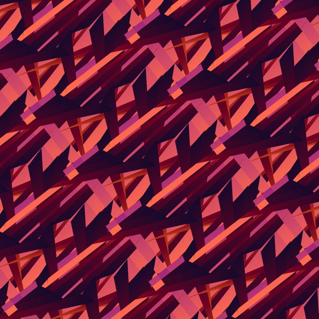 This features a vibrant red and orange patterned background with a unique design. It consists of various shapes, including rectangles, arranged in an intricate manner. These shapes are combined to create a visually appealing and eye-catching pattern that stands out against the red and orange backdrop. This design could be used as a seamless tile for different purposes or simply as a decorative element in any setting.