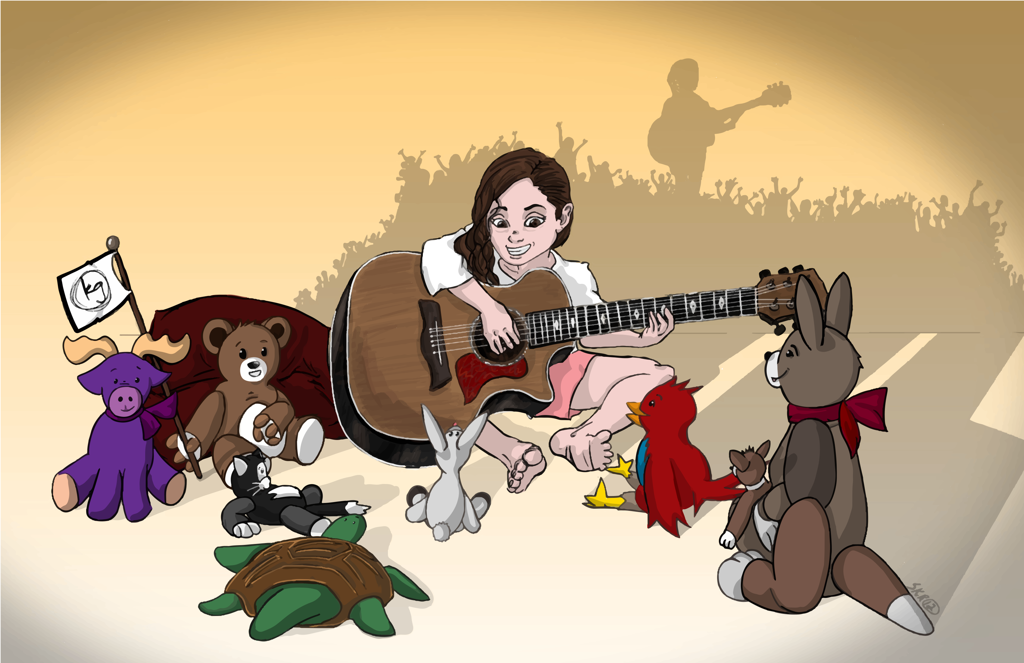 Tags: animal, bear, bird, cat, concert, female, girl, goat, kangaroo, music, semi-realistic people, turtle, woman, semi-realistic person