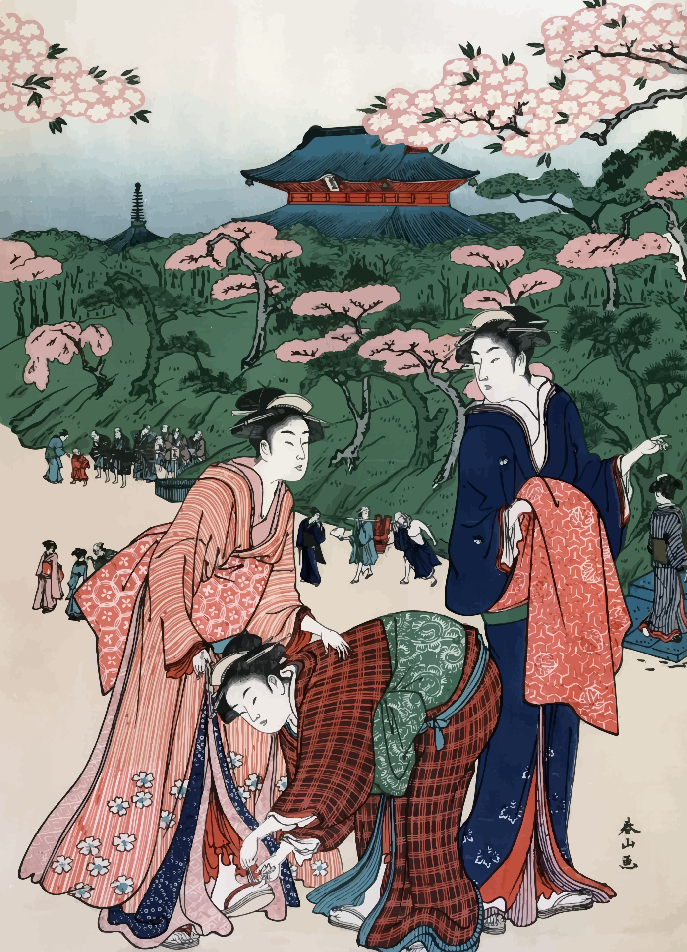 Tags: art, geisha, japanese, landscape, painting, park, semi-realistic people, vintage, asian, woman, cherry blossom