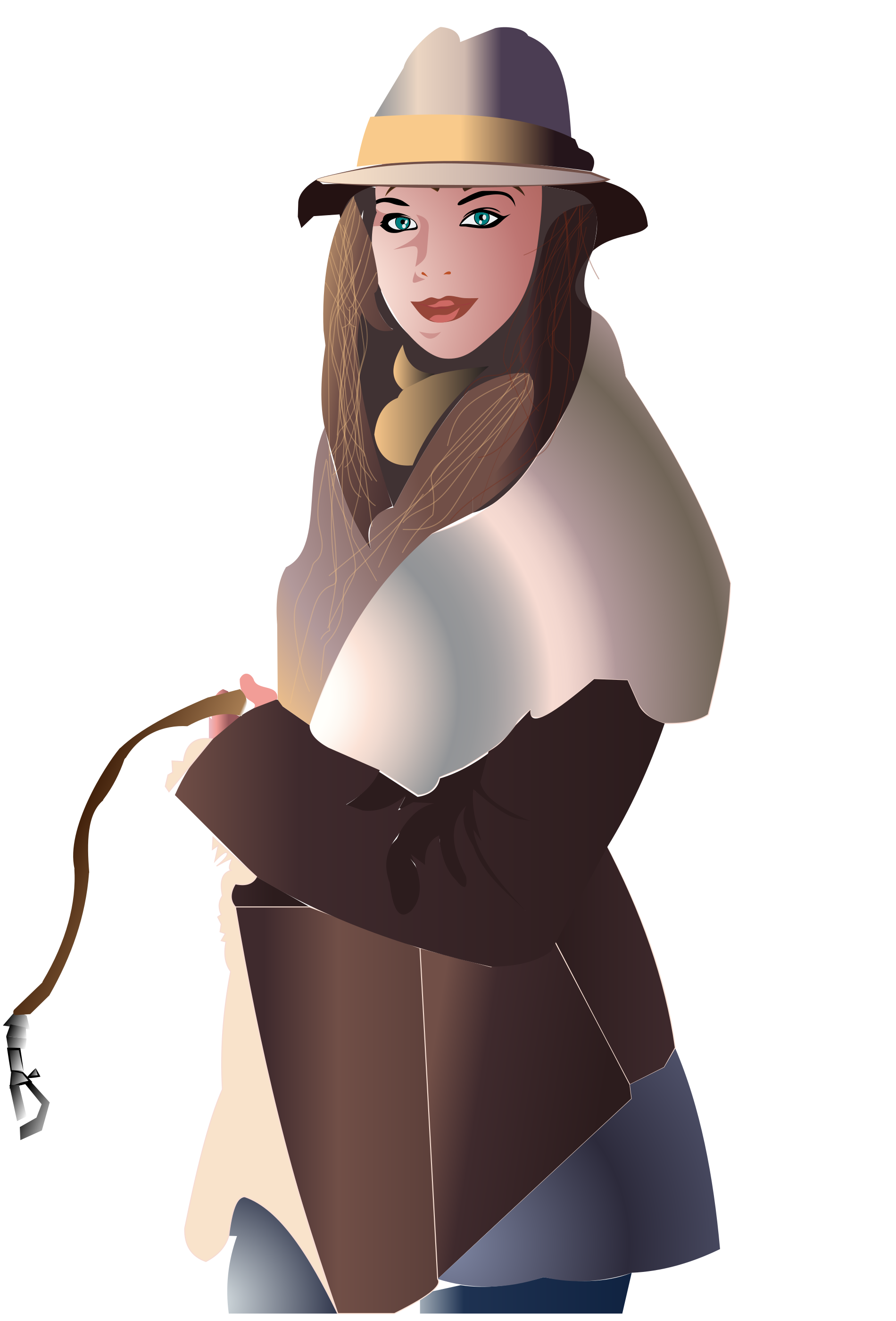 This features a woman wearing a brown coat and hat, standing outside. She is holding a leash in her hand, possibly indicating that she is walking her dog or another pet. The woman appears to be dressed for cold weather, with the coat providing warmth and protection from the elements. Her attire suggests that she might be enjoying outdoor activities during colder months.