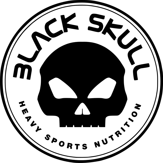 This features a black and white logo for Black Skull Heavy Sports Nutrition. The logo is an eye-catching skull design with the words "Black Skull" written in bold letters around it. This brand's logo is likely used to represent their sports nutrition products, which are designed to provide athletes and fitness enthusiasts with high-quality supplements for optimal performance. The skull symbolizes strength and resilience, making it a fitting choice for a sports nutrition company.