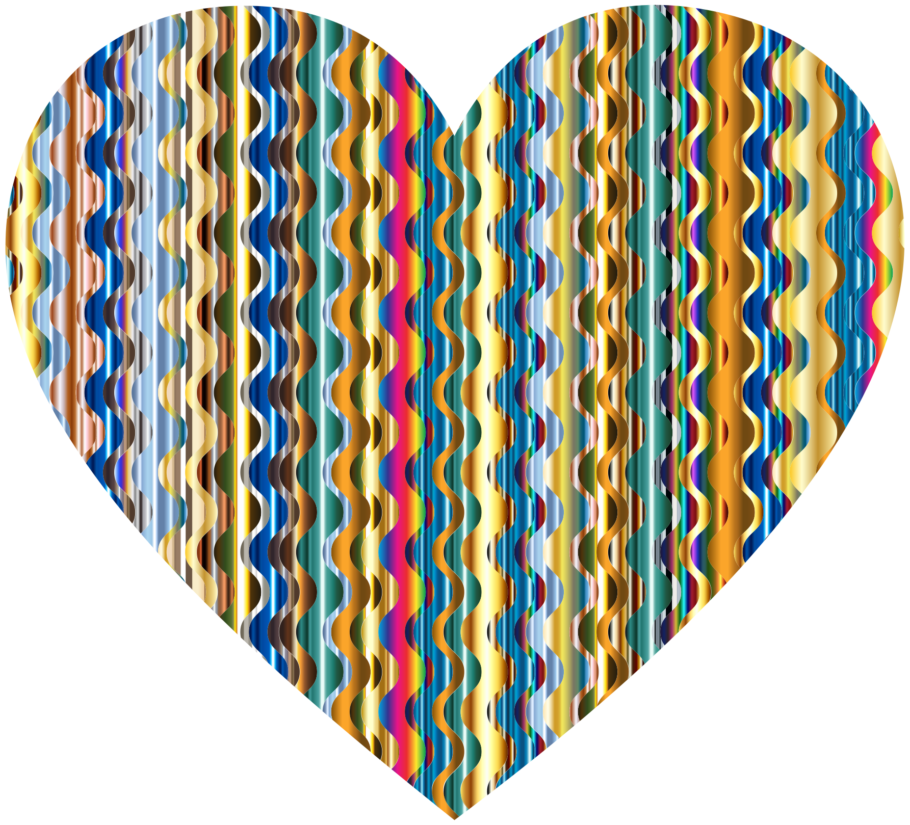 This features a heart-shaped design with a colorful pattern of stripes and swirls. The heart is made up of various colors, including red, yellow, blue, green, and orange. These colors are arranged in a visually appealing manner, creating an eye-catching display. The heart's unique design makes it stand out as a creative and artistic piece.