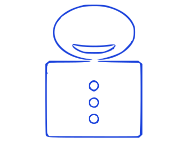 This features a blue and white cartoon-like robot with a smiling face. It has a large head, two eyes, and a mouth that appears to be smiling. The robot is standing on its own, occupying the majority of the frame. The design of this robot gives it an anthropomorphic appearance, making it look like a friendly character.