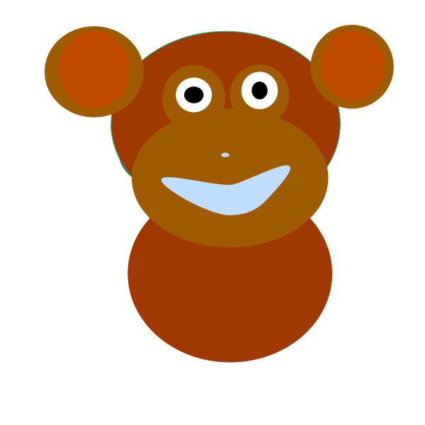 This features a brown and white cartoon monkey with a big smile on its face. It has two large eyes, one on the left side of its head and another on the right side. The monkey's mouth is open, showing off its teeth in a playful manner. Its ears are perked up, adding to the lively expression. This cute cartoon character appears to be enjoying itself as it poses for the camera.