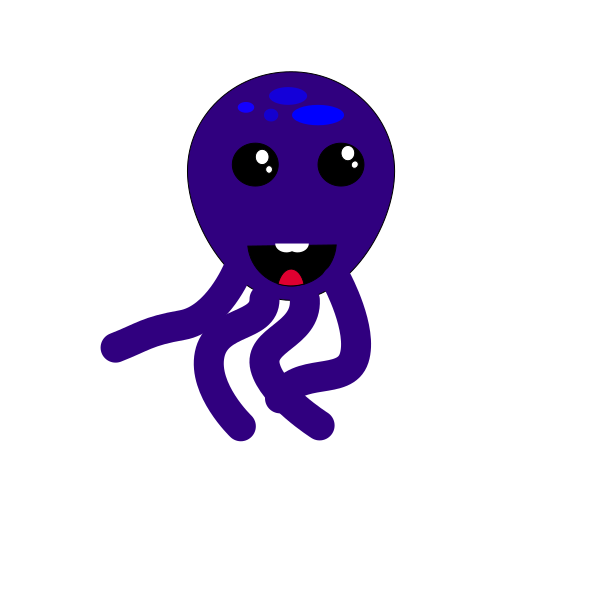 This features a cartoon octopus with a blue body and purple eyes. It has a big smile on its face, giving the impression of being happy or playful. The octopus is positioned in the center of the frame, occupying most of the space. Its design appears to be colorful and whimsical, making it an appealing visual for children or those who enjoy cartoons.