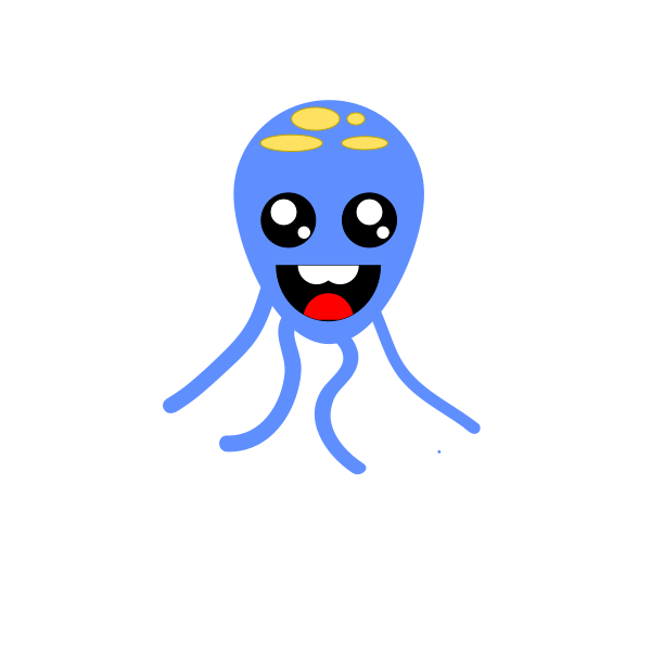 This features a blue cartoon octopus with big eyes and a smile on its face. It appears to be happy, possibly laughing or smiling at the viewer. The octopus is positioned in the center of the frame, taking up most of the space. Its design gives it a friendly and playful appearance, making it an appealing character for children or anyone who enjoys cartoons.