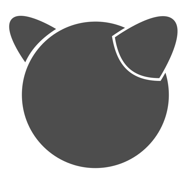 This features a black and white cat icon with no facial features. It is a simple, clean design that showcases the outline of the cat's head. The cat appears to be wearing a hat, giving it a unique and playful appearance. This icon could be used in various contexts, such as on social media or in an app, to represent cats or related content.
