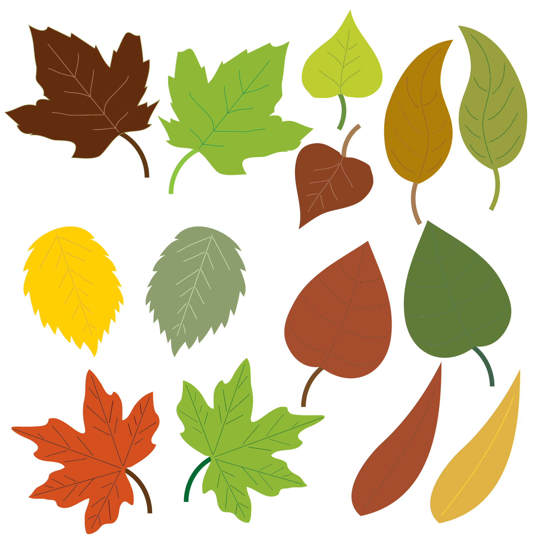 This features a collection of fourteen different types of leaves, each with unique colors and shapes. These leaves are arranged in a visually appealing manner, showcasing the diversity within their species. They come in various shades of brown, green, yellow, and orange, creating an eye-catching display that highlights the beauty found in nature. The arrangement of these leaves on a white background allows them to stand out prominently, making it an attractive and engaging image for viewers.