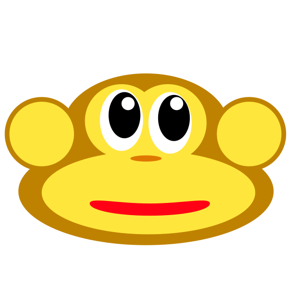 This features a yellow cartoon monkey with big eyes, giving it an expressive and playful appearance. It has a prominent nose and mouth, which adds to its cute and friendly demeanor. The monkey's large eyes are positioned close together, making them appear even more prominent in the scene. Overall, this cartoon monkey is a cheerful and endearing character that can bring joy to those who view it.