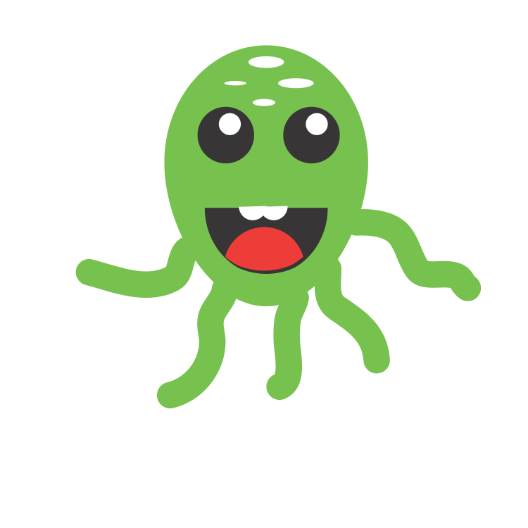 This features a green cartoon character with big eyes and a smile on its face. It appears to be an octopus, as it has multiple tentacles extending from its body. The character is standing in the center of the frame, occupying most of the space. Its facial expression suggests that it might be happy or playful, adding a sense of fun and whimsy to the scene.