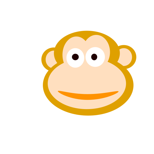 This features a cartoon monkey with a big smile on its face. It is an orange and yellow color, giving it a cheerful appearance. The monkey's eyes are open wide, showing that it is happy or excited about something. Its mouth is slightly open, adding to the friendly and welcoming vibe of the image. This cartoon monkey could be used in various contexts such as advertising, children's books, or even as a decorative element on clothing or accessories.