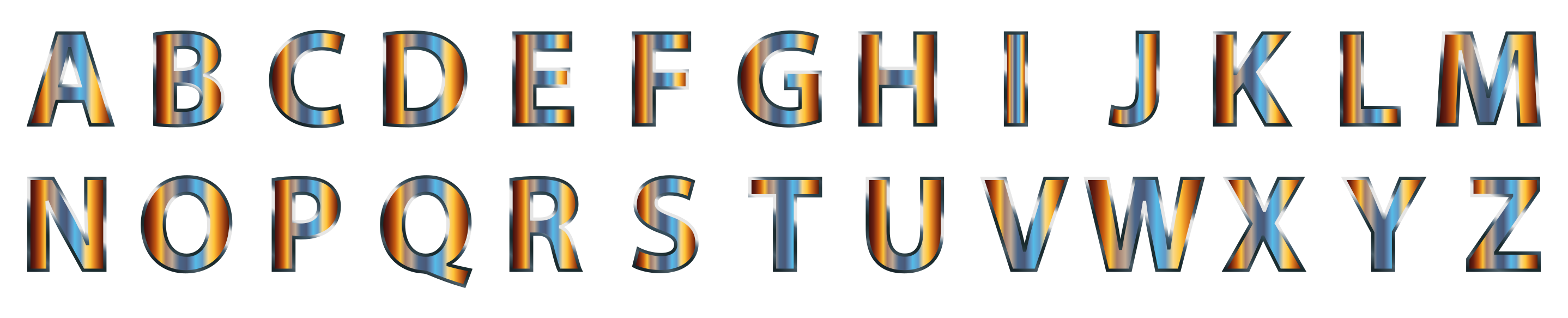 This features a large, colorful alphabet displayed in an artistic manner. Each letter is uniquely colored and arranged to create a visually appealing display. The letters are spread across the entirety of the image, with some letters appearing larger than others due to their positioning. This creative arrangement of letters gives the impression that they have been "enhanced" or given an artistic touch, making it an interesting visual piece.