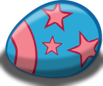 This features a blue egg with three pink stars on it. The egg also has a pink line on top, adding to its colorful appearance. The combination of the blue and pink colors creates an eye-catching design that makes this egg stand out from other objects.