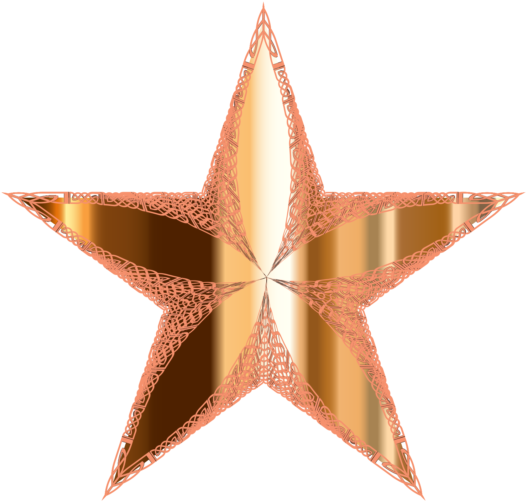 This features a shiny, golden star with five points. It has a pink outline that adds to its visual appeal. The star is the main focus of the image and appears to be made from metal or gold material. Its intricate design makes it an attractive piece of artwork or decoration.