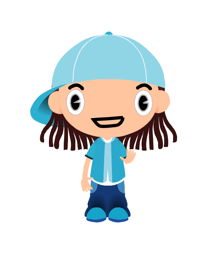 This features a cartoon character with long hair, wearing a blue hat and a blue shirt. This character is standing in front of the camera, smiling and waving at the viewer. The character's outfit includes jeans, which adds to its casual and friendly appearance. Overall, this image portrays a cheerful and approachable cartoon figure that would likely appeal to children or fans of animated characters.