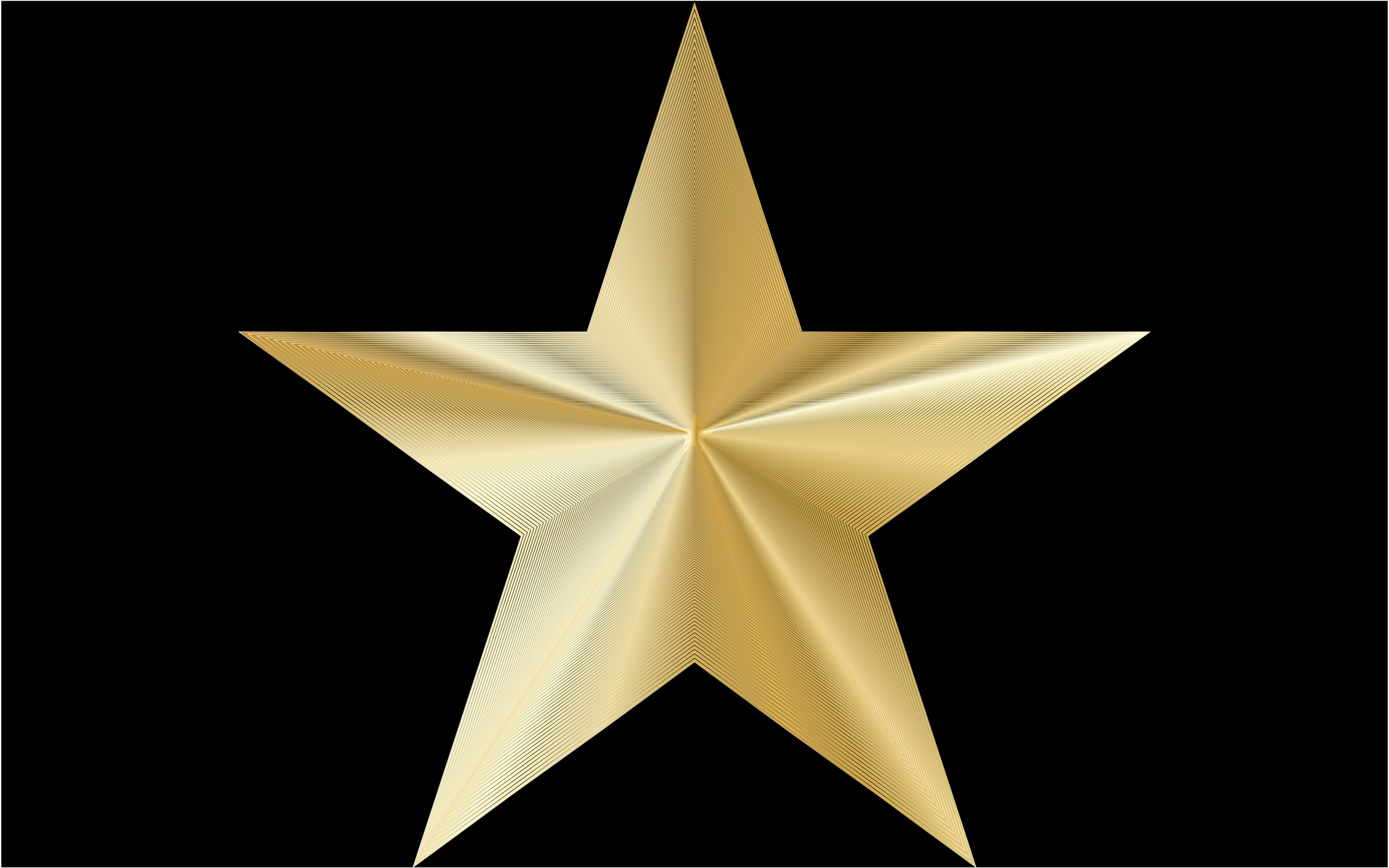 This features a large, shiny gold star with a black background. The star is the main focus of the picture and appears to be three-dimensional in nature. It has a unique design that makes it stand out against its dark surroundings. The star's shape and size give it an impressive appearance, making it an eye-catching element within the image.