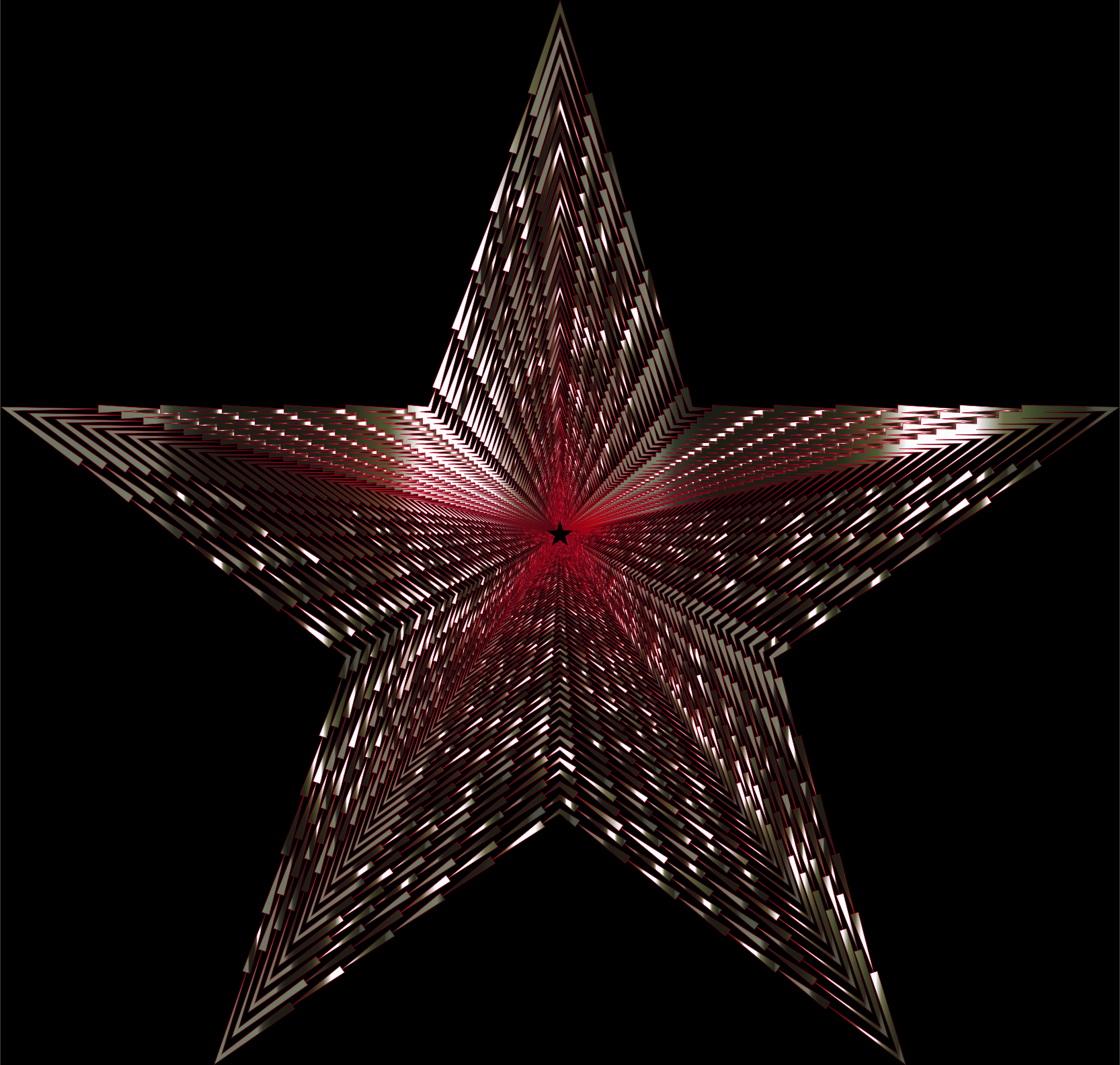 This features a large, intricate red and black star with metal spikes. These spikes create an interesting tunnel-like effect within the star, giving it a unique and captivating appearance. The star is positioned in the center of the frame, drawing attention to its striking design. Overall, this artistic representation of a star showcases creativity and craftsmanship through its use of metal spikes and vibrant colors.