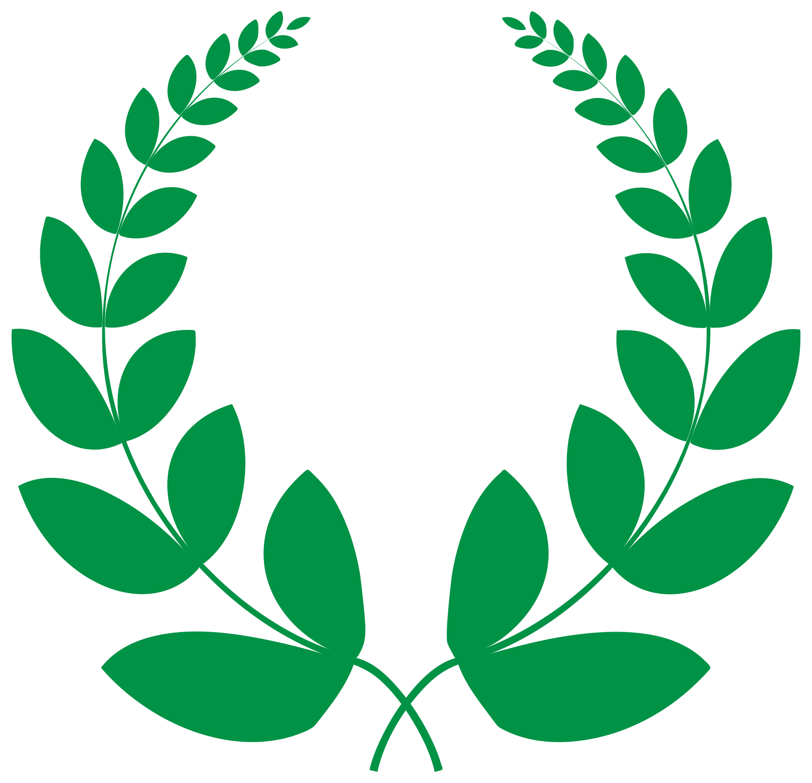 This features a green laurel wreath with two crossed branches. The leaves are intricately detailed, giving the impression of a realistic representation of the plant. The wreath is adorned with numerous leaves, creating an elegant and sophisticated appearance. This artwork showcases the beauty of nature through its depiction of the laurel wreath.