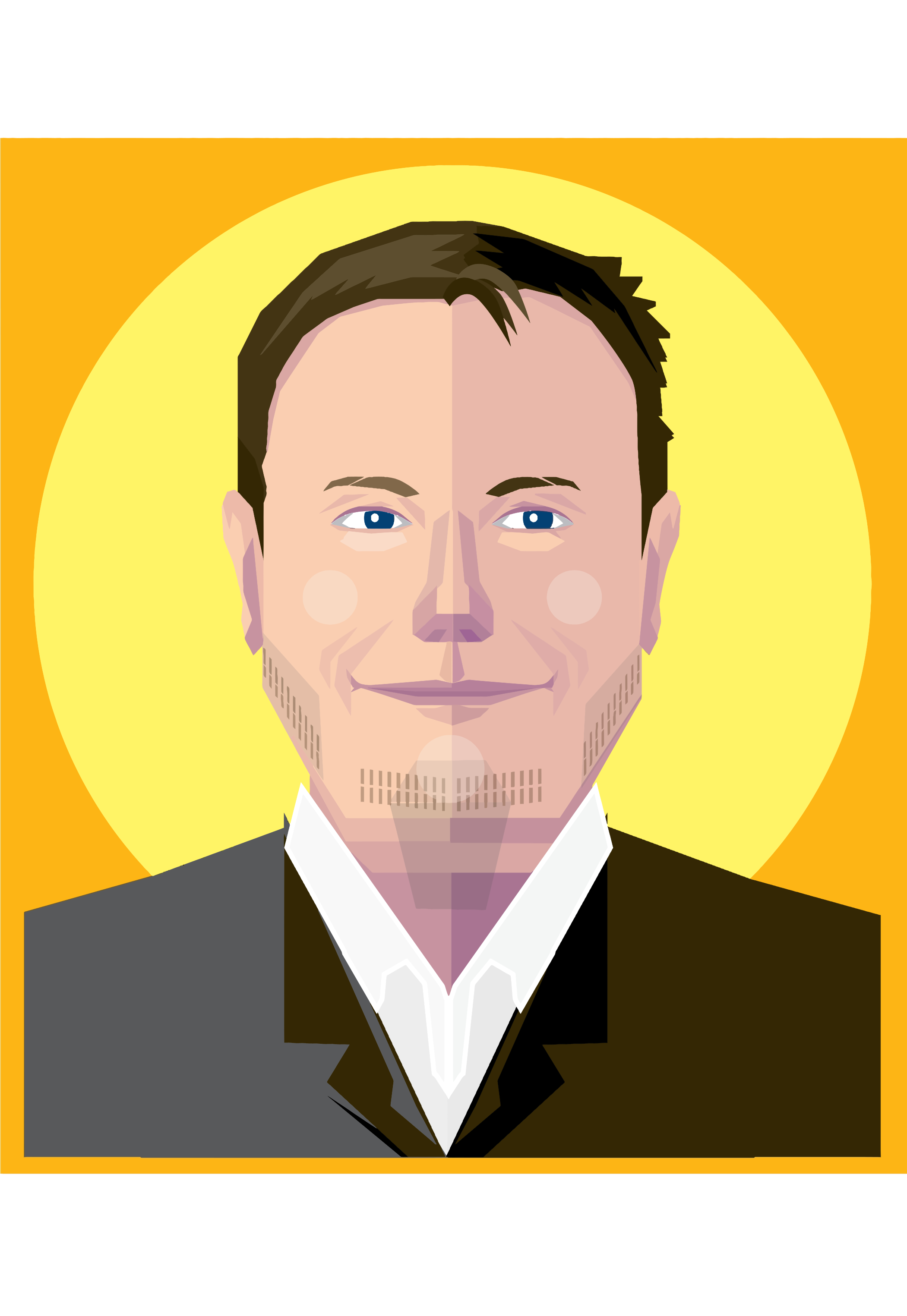 This features a man with a beard and mustache, wearing a suit. He is smiling at the camera, giving off a friendly vibe. The man's attire includes a tie, which adds to his professional appearance. The overall scene appears to be well-lit, possibly in a studio setting or during daytime.