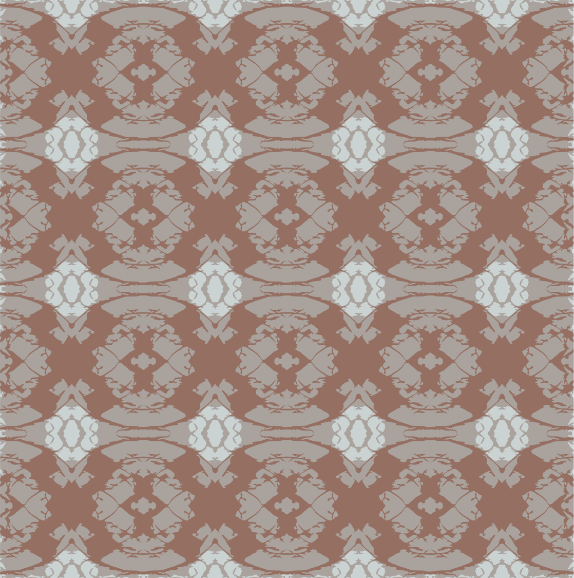 This features a patterned design with a mix of brown and tan colors. It appears to be a wallpaper or fabric design, possibly inspired by an old-fashioned style. The pattern consists of various shapes, including circles and diamonds, which are interspersed throughout the design. These shapes create a visually interesting and unique appearance that can add character to any space where it is used.