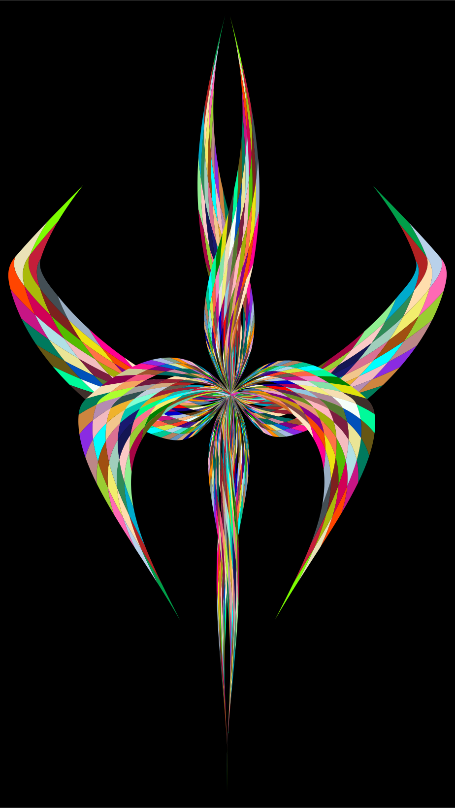 This features a colorful and intricate design, which appears to be an abstract art piece. It is composed of various shapes and colors that create a visually striking pattern. The design resembles a stylized bird or a butterfly with its wings spread out, giving it a unique and eye-catching appearance. The vibrant colors and the creative arrangement of the shapes make this artwork stand out as an interesting piece to observe.