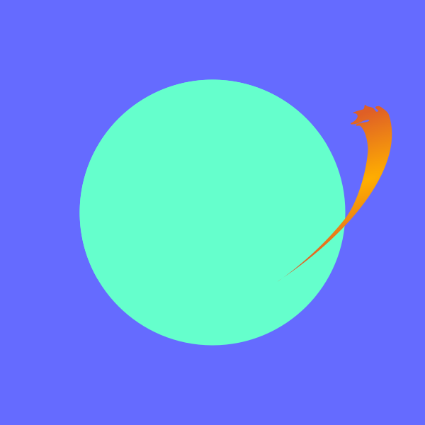 This features a blue circle with an orange line extending from it. This unique design gives the impression of a planet or celestial body, possibly resembling a comet or a spacecraft. The blue background provides a striking contrast to the orange line, drawing attention to this captivating visual element.