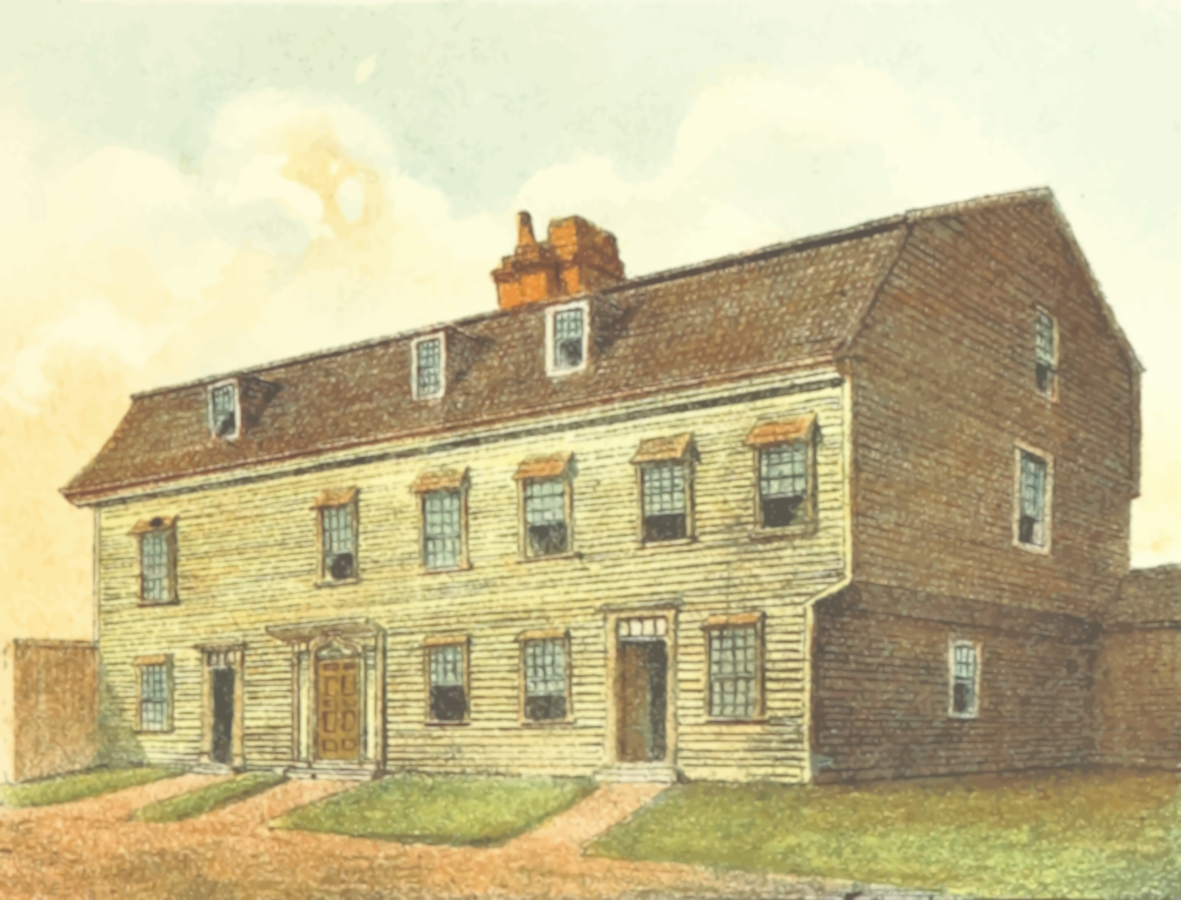 This features a large, old wooden house with many windows. It is situated on the side of a road and has two doors, one at each end. The house appears to be well-maintained and is painted in a warm color palette. The presence of numerous windows suggests that it may have been designed for comfort and natural lighting. The overall impression is that this is an inviting and charming home, likely situated in a picturesque countryside setting.