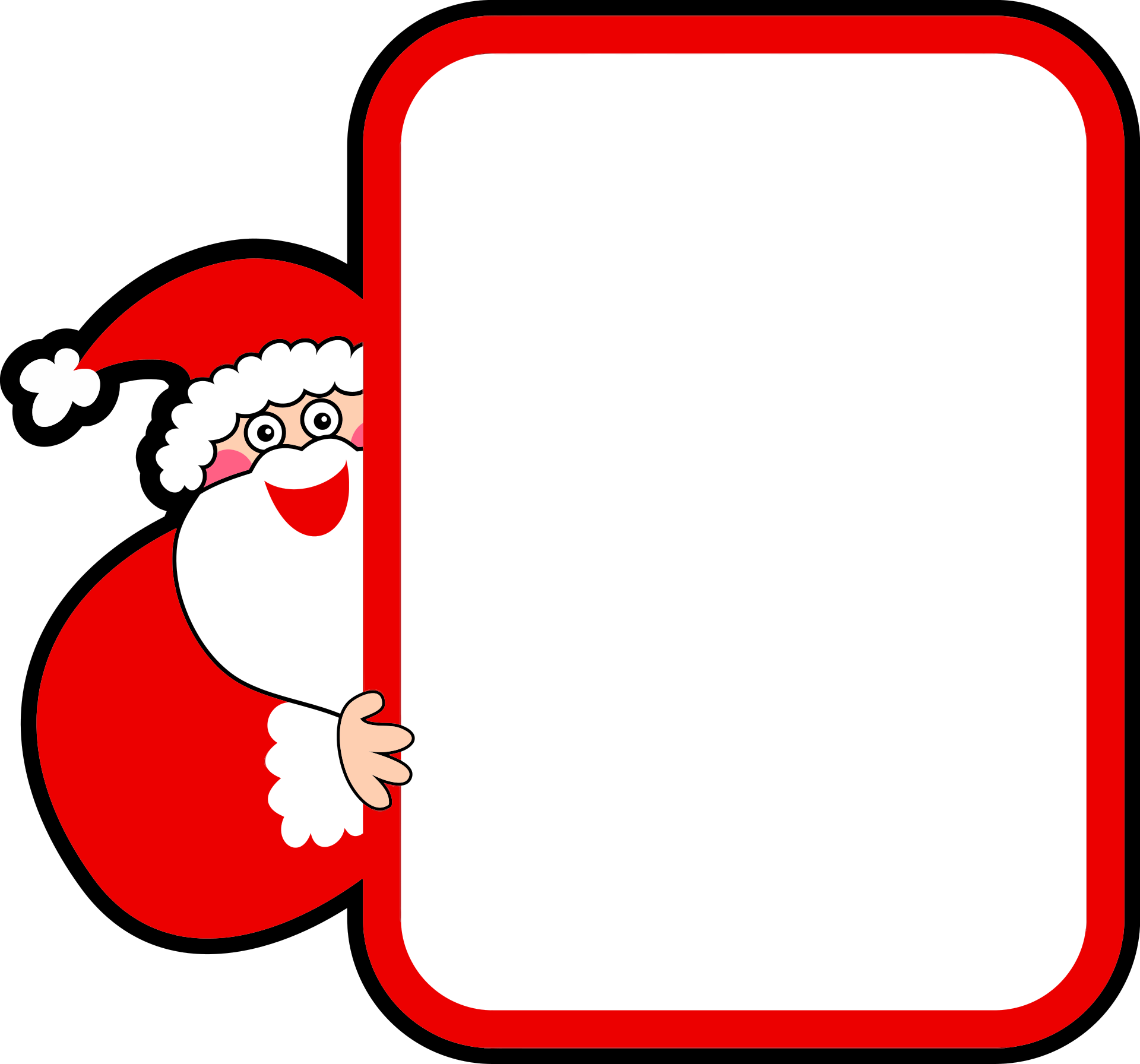This features a red Santa Claus card with a white outline. Santa is peeking out from behind the card, wearing his traditional red outfit. He appears to be hiding in the background of the card, adding an element of surprise and playfulness to the scene. The card itself has a large square shape, making it stand out as a prominent feature in the image.