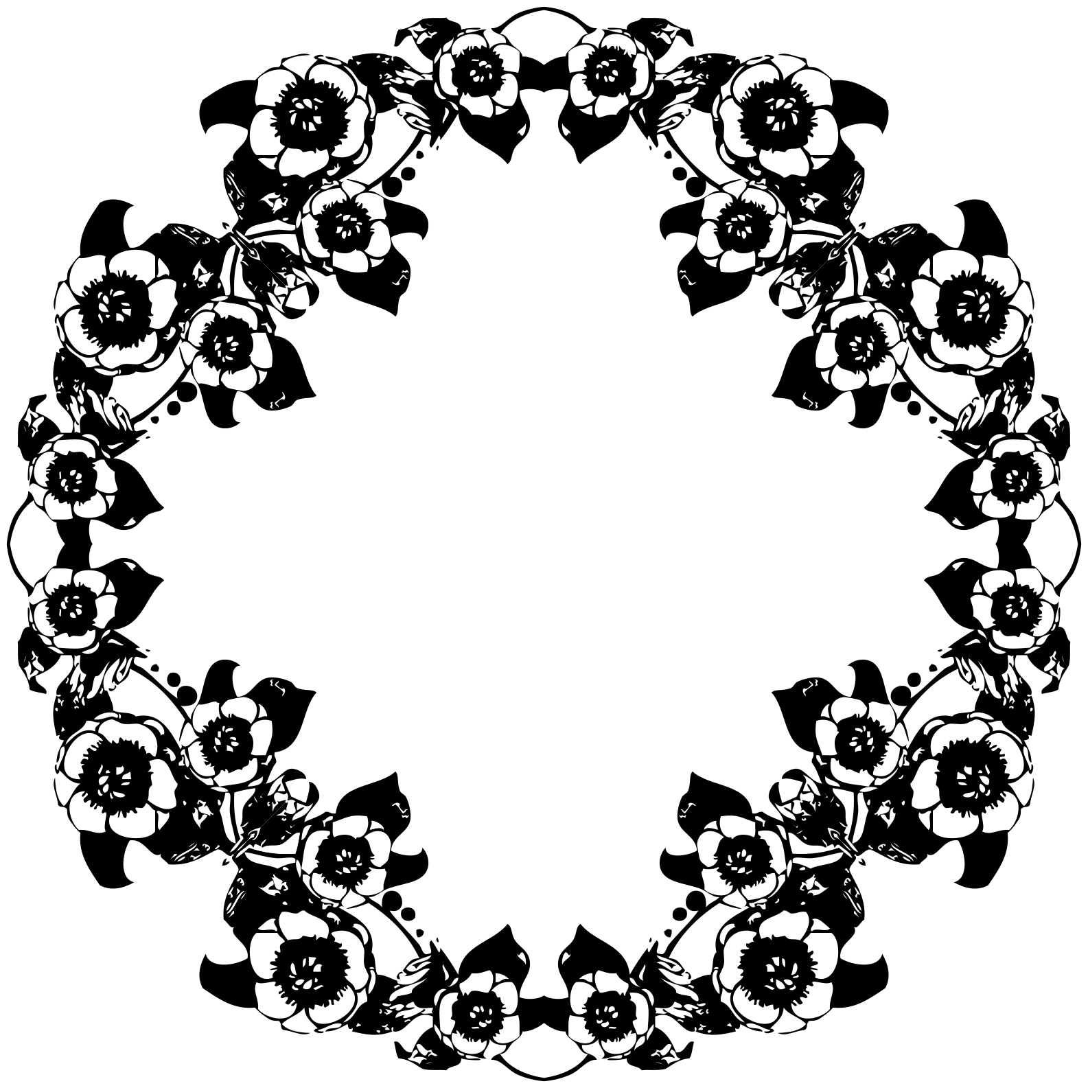 This features a large, ornate design with an intricate pattern of flowers and leaves. The design is circular in shape, giving it the appearance of a wreath or a decorative piece. The flowers are arranged in various positions around the circle, creating a visually appealing composition. The overall effect is that of a detailed, artistic work that showcases the beauty of nature through its floral motifs.