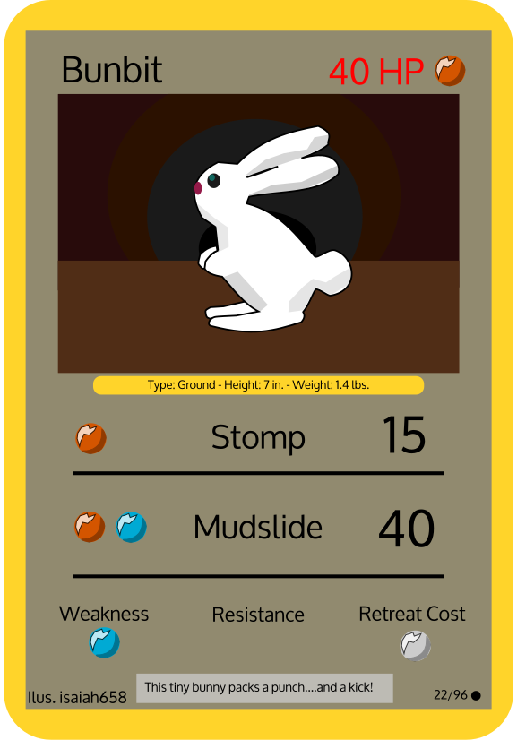 This features a card game with a cartoon bunny rabbit as the main character. The rabbit is standing on a field, and there are several other cards surrounding it. These additional cards include one that reads "Stomp," another that says "Mudslide," and a few others that display numbers or letters. The overall scene appears to be an animated card game with various elements and characters involved.