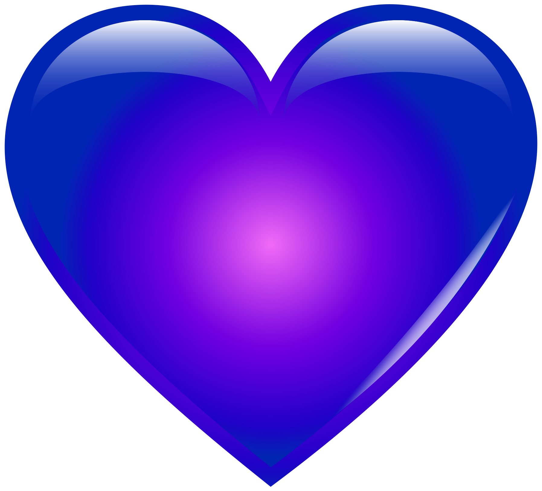 This features a large, blue heart with a purple center. The heart is the main focus of the picture and appears to be the only object in the frame. The color scheme of the heart consists of a deep blue on the outside and a lighter shade of purple in the middle, creating an eye-catching contrast. This unique design makes for an interesting and visually appealing image.